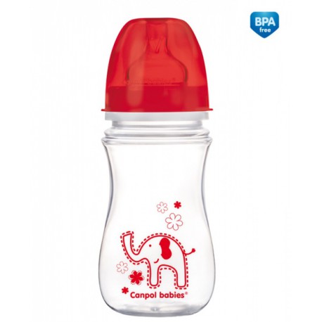 Tvarovaná polypropylénová láhev EasyStart s jednobarevným potiskem o objemu 240ml, která se velmi dobře drží při krmení. Široké hrdlo usnadňuje plnění a mytí, výrazná stupnice pak kontrolu dítětem vypitého množství. Obsahuje protikolikový dudlík 3-6m, který svým tvarem co nejvíc připomíná matčin prs. Umožňuje tak dítě kojit i krmit z láhve zároveň. V láhvi uzavřené těsnícím diskem můžete pokrm zmrazovat nebo transportovat bez rizika vylití. Láhev neobsahuje BPA.