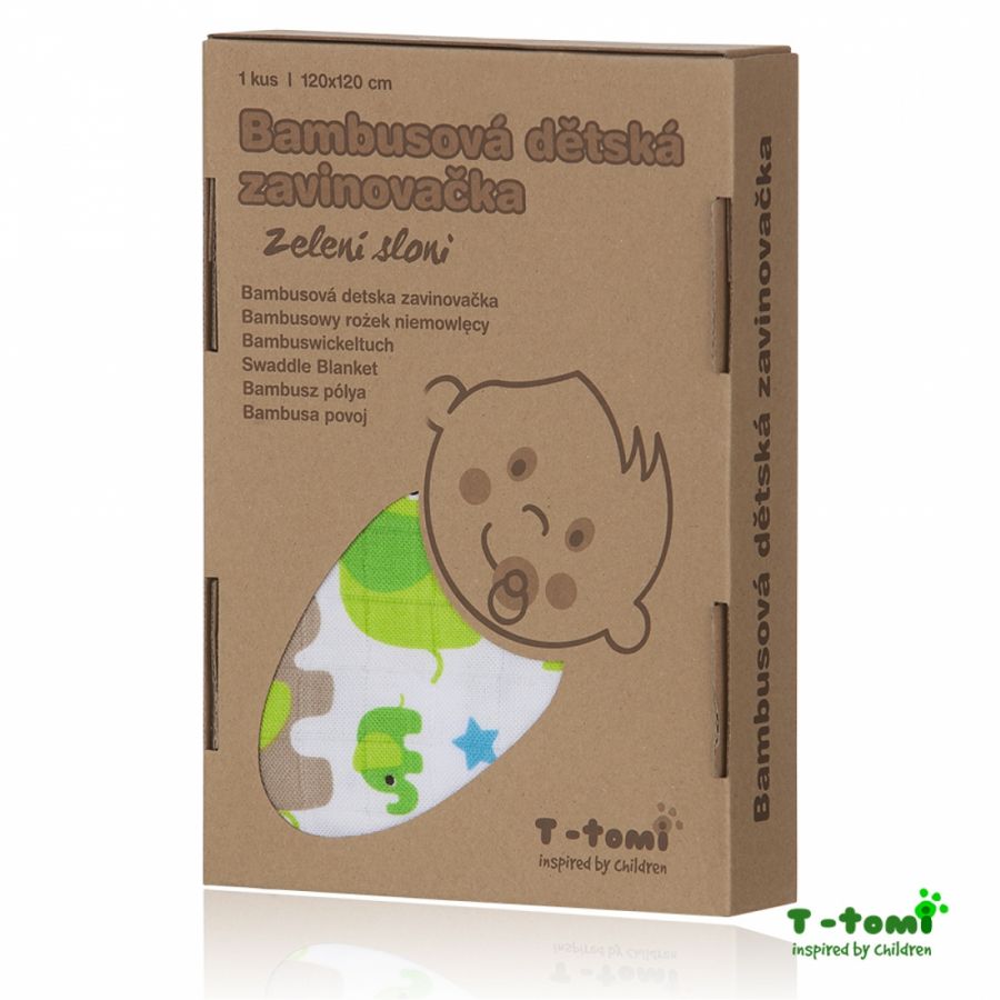 Bambusová vysokogramážní zavinovačka T-tomi s potiskem z bambusového materiálu je vyrobena dvouvrstvou technologií dutinného tkaní. Díky tomuto zpracování je bambusová zavinovačka  mnohonásobně savější, měkčí a jemnější než klasické bavlněné osušky. Bambusová zavinovačka T-tomi má všestranné využití. Lze ji použít nejen pro zavinutí, ale i jako osušku, podložku, prostěradlo, clonu přes kočárek a jiné.
