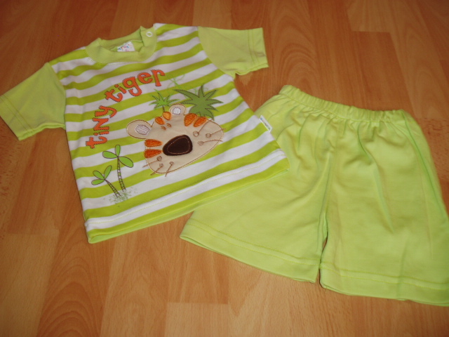 Dětský komplet-triko krátký rukáv-patentky u krku pro snadné oblékání Vašeho miminka+kraťasy v pase na gumu,100%bavlna.