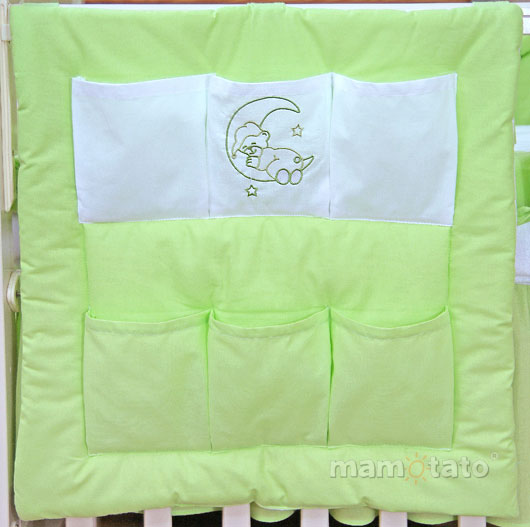Praktický luxusní kapsář na postýlku s 6-ti kapsičkama do kterých můžete dát cokoliv, pudřík, mastičku a hračky, prostě to co potřebujete mít u postýlky pořád k ruce.K tomu nádherná vyšívka. Rozměry: 60x60 Materiál 100% Přímo od výrobce, atestováno. I.Jakost s certifikátem EU pro ekologii textilu OKO-TEX Standard