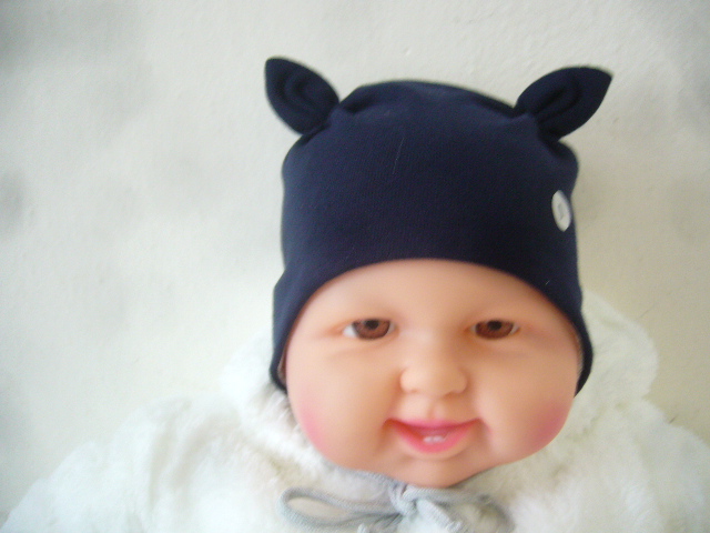 Kojenecká bavlněná dvojitá čepička MK COOL. Krásná čepička ušitá na zakázku z dvojité vrstvy bavlny. Vhodná jak na jaro tak i na podzim. Složení 95% bavlna, 5% elastan