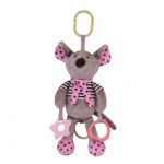 Plyšová hračka ve veselých barvách rozvíjí smyslové vnímání dítěte a podněcuje jeho fantazii. Díky spirálovitému tvaru se dá upevnit na postýlku nebo ke kočárku či autosedačce. Dětská hračka má pískací hvězdičku se zrcátkem, míček s rolničkou a růžového králíčka s chrastítkem. Rozměry: délka cca 18-55 cm (dá se natáhnout).