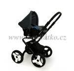 Centrální brzda Odlehčená aluminiová konstrukce. Připevnění nástaveb jediným kliknutím. Připevnění nástaveb po i proti směru jízdy. Rozložení konstrukce jediným tahem. Výškově nastavitelná kožená rukojeť s maximální výškou od země 115 cm ( 111 cm ) dle použitých koleček. Výška spodní hrany uchycené nástavby od země 60 cm. Nafukovací ložisková kola Přepínač regulace pérování - odpružení všech 4 koleček Velmi prostorný uzavřený nákupní košík pod kočárkem.výškově nastavitelná rukojeť